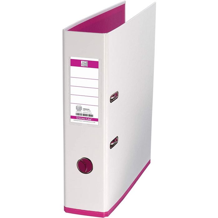 Classeur à levier blanc et rose avec 2 anneaux dos 8 cm pour le classement des documents format A4 OXFORD MyColour. Référence 100081031