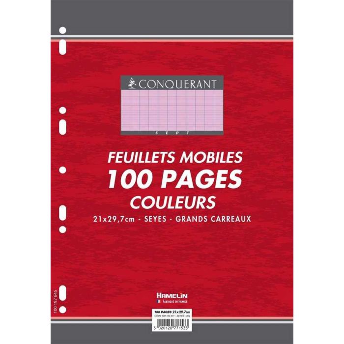 Feuilles mobiles roses 21 x 29,7 cm à grands carreaux pour le lycée et le collège de CONQUERANT Séyès. Référence 400067101
