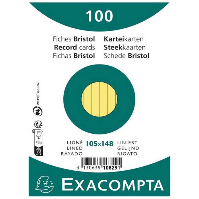 Fiches bristol lignées 105 x 148 mm Jaune Exacompta pour notes et mémos de qualité. Référence 10829SE