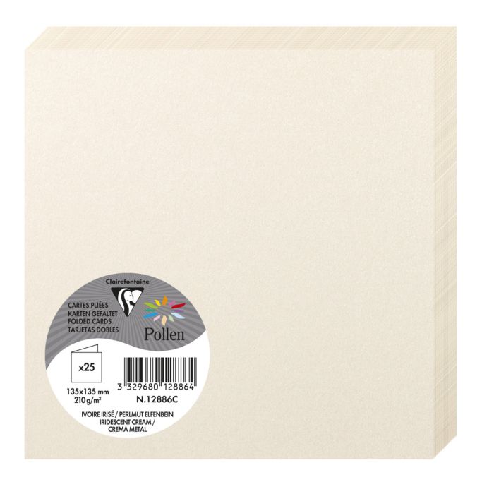 Cartes double en papier - 135 x 135 mm - Ivoire Irisé CLAIREFONTAINE Pollen Lot de 25