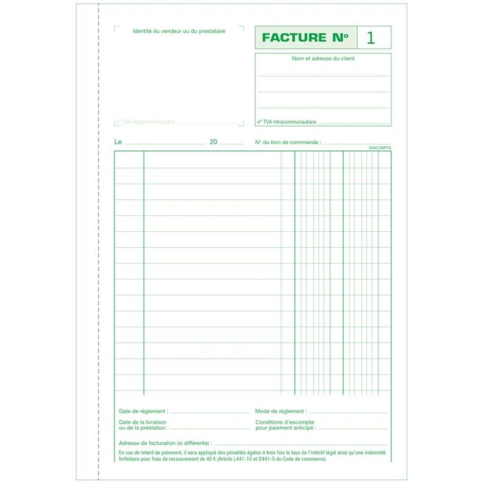 FACTURE sans TVA Carnet A5 - Autocopiant Dupli EXACOMPTA 13278E