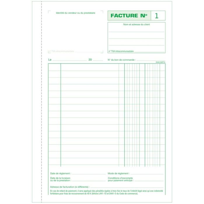 FACTURE sans TVA Carnet autocopiant Dupli - 210 x 135 mm EXACOMPTAPrix Spécial 5,16 € 4,30 € Prix normal 5,75 €