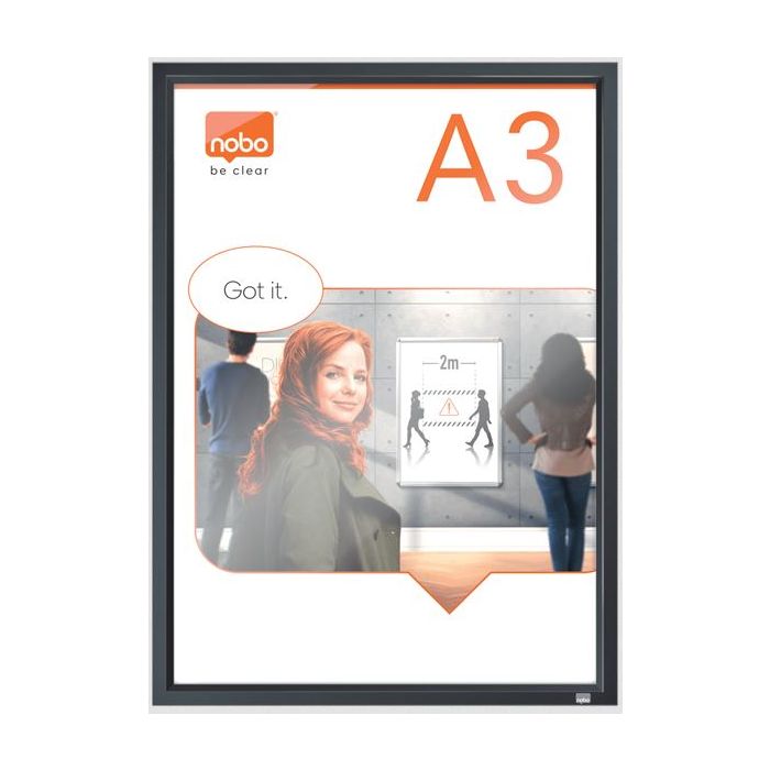 Porte affiches avec cadre en aluminium pour l'intérieur format 339 x 463 mm - A3 couleur Graphite NOBO. Référence 1915581