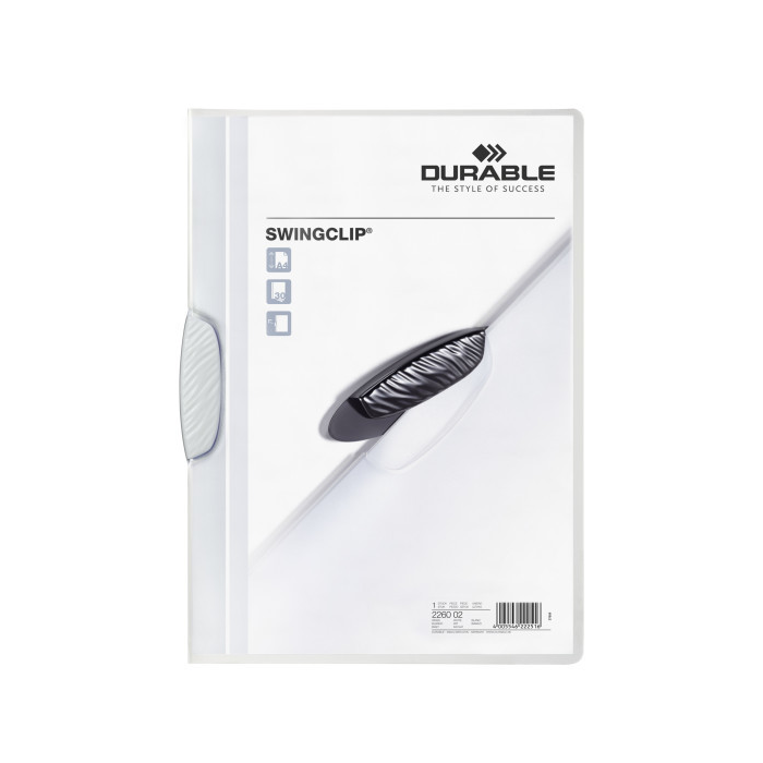 Chemise de présentation A4 couleur Blanc avec clip DURABLE Swingclip pour le maintien de documents commerciaux et administratifs. Référence 2260-02