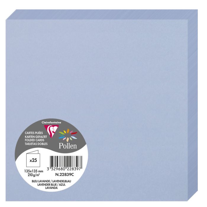 Cartes double en papier - 135 x 135 mm - Bleu Lavande CLAIREFONTAINE Pollen Lot de 25