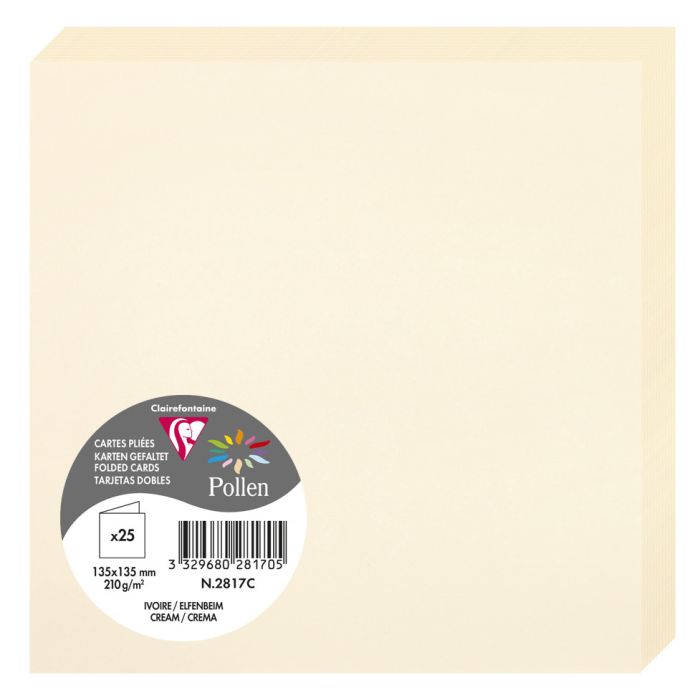Cartes double en papier - 135 x 135 mm - Ivoire CLAIREFONTAINE Pollen Lot de 25