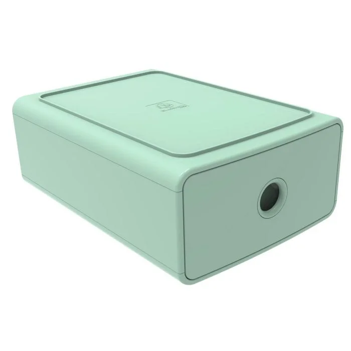 Caisson de rangement à tiroir fermé en plastique Vert sauge pour bureau EXACOMPTA AutentiK Tiny box. Référence 315480D