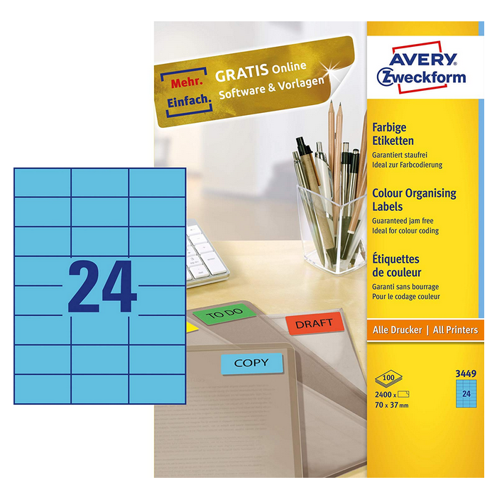 Étiquettes adhésives Bleues 70 x 37 mm pour un marquage de qualité AVERY. Référence 3449