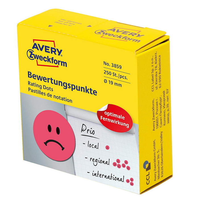 Pastilles adhésives - Motif Visage négatif - 19 mm - Rouge AVERY Lot de 250