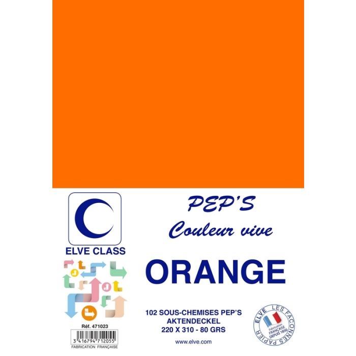 Sous-Chemise pour dossier A4 - Orange ELVE Pep's Lot de 102