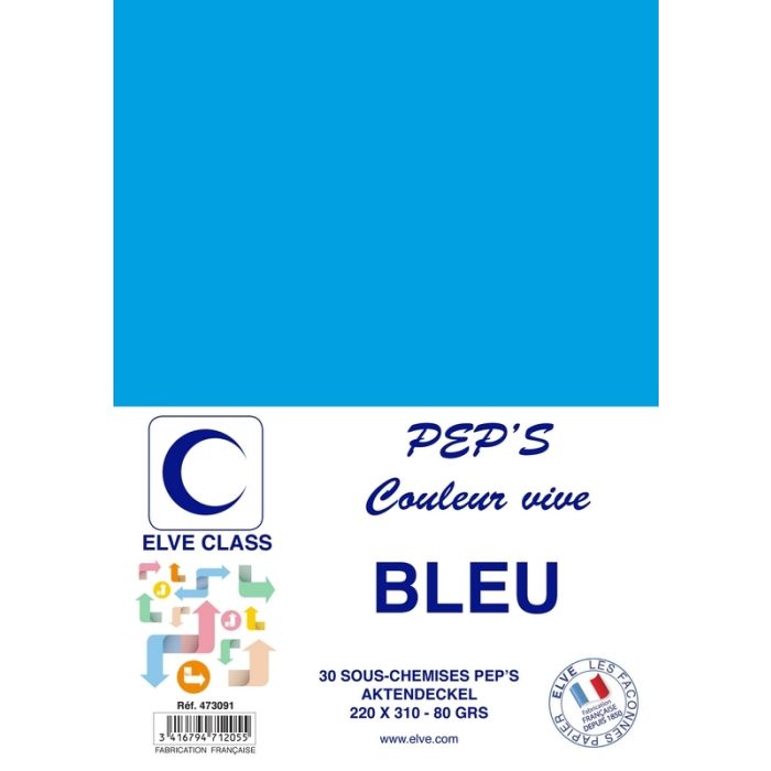 Sous-chemises Bleues pour dossier de format A4 ELVE Pep's Lot de 30. Référence 473091