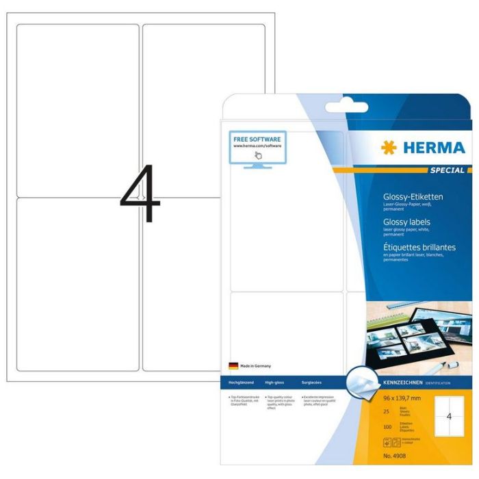 Étiquettes adhésives brillantes 96 x 139,7 mm pour une impression en qualité photo. Référence 4908