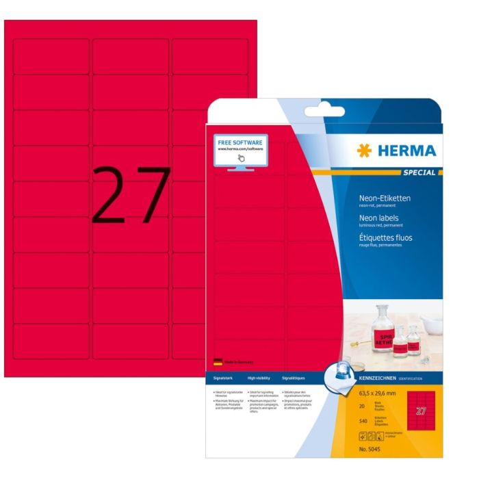 Etiquettes adhésives - 63,5 x 29,6 mm - Rouge fluorescent HERMA Lot de 540