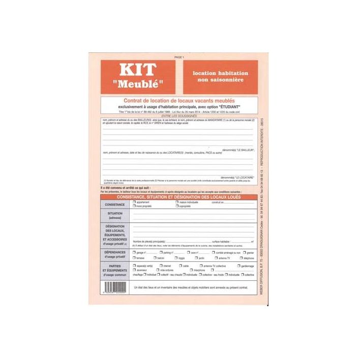 Kit de location de meublé non saisonnier de format A4 de WEBER. Référence 721