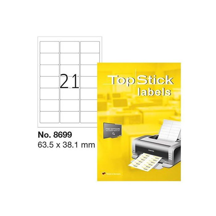 Etiquettes autocollantes permanentes 63,5 x 38,1 mm à imprimer pour étiquetage et marquage de TOP STICK. Référence 8699