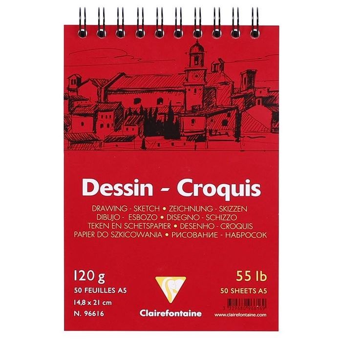 Bloc A5 pour dessins et croquis en papier blanc CLAIREFONTAINE. Référence 96616C