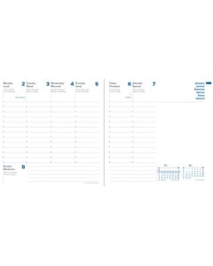 Professionnel (entreprise, association, collectivité, etc.) ou particulier, choisissez la configuration d’agenda qui vous convient le mieux : 1 semaine sur 2 pages, 1 semaine par page, etc.