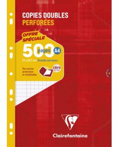 CLAIREFONTAINE Lot de 500 pages - Copies doubles Petits Carreaux - 210 x 297 mmRéférence : 87000448
