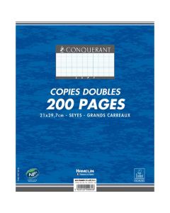 Lot de 200 pages - Copies doubles non-perforées Grands carreaux - 210 x 297 mm CONQUERANT SEPTRéférence : 339205700
