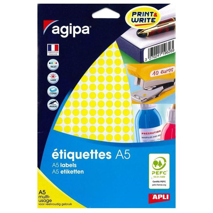 Pastilles autocollantes 8 mm de couleur jaune d'AGIPA. Référence 114304