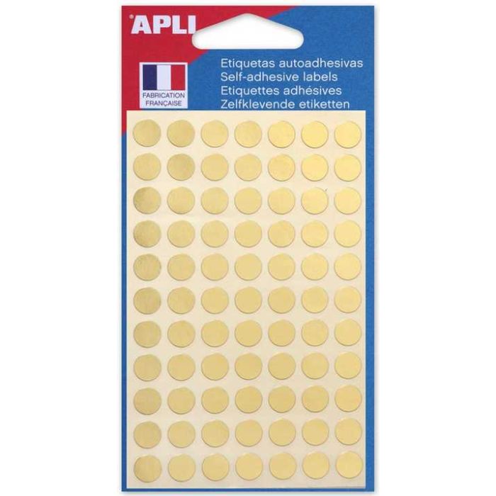 Petites gommettes adhésives APLI couleur Or de 8 mm : Praticité et visibilité garantie. Référence 100600