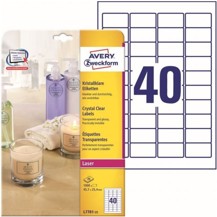 Étiquettes transparentes autocollantes très résistantes 45,7 x 25,4 mm AVERY. Référence L7781-25
