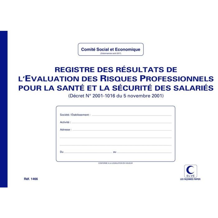 Registre des évaluations des risques professionnels (ERP) pour la santé et la sécurité des Salariés de l'entreprise ELVE. Référence 1466