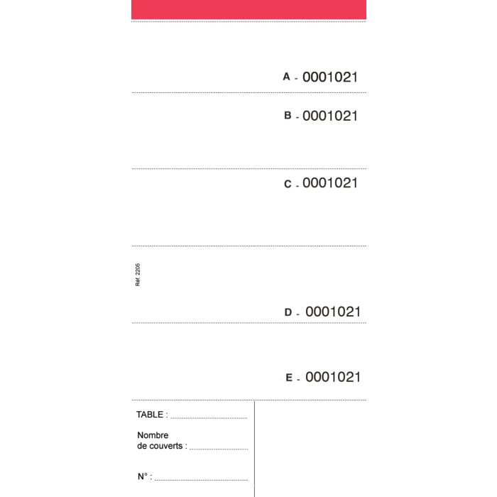 Bloc Brasserie pour la prise de Commande avec 5 coupons détachables 200 x 96 mm ELVE. Référence 2205