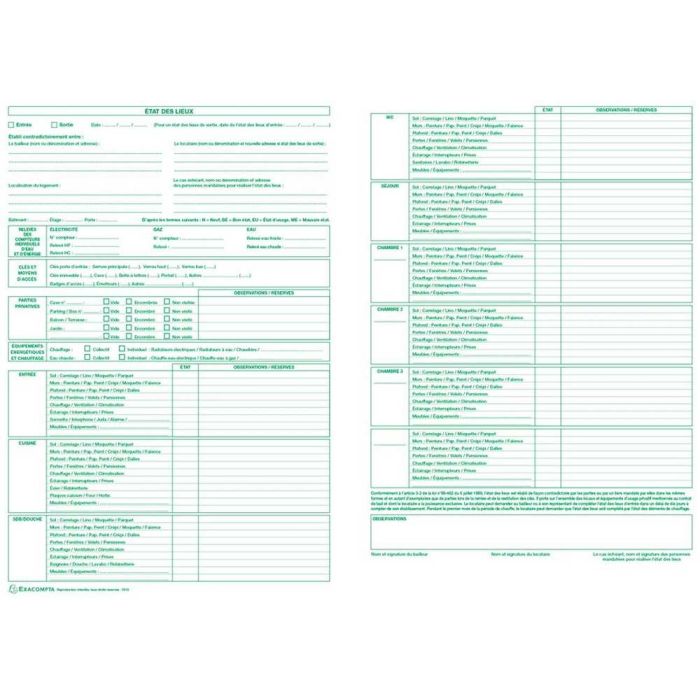 Etat des lieux Entrée et sortie Appartement et Maison EXACOMPTA