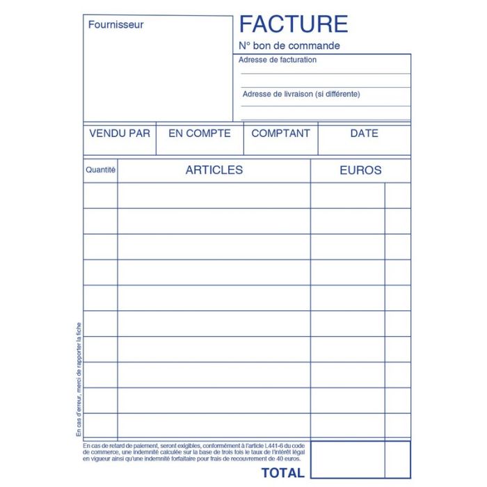 FACTURE Carnet 210 x 140 mm - Autocopiant Dupli (Elve)Prix Spécial 5,34 € 4,45 € Prix normal 5,94 €