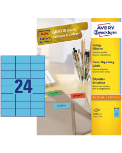 Étiquettes autocollantes - Bleu - 70 x 37 mm AVERY Lot de 2400Référence : 7203449