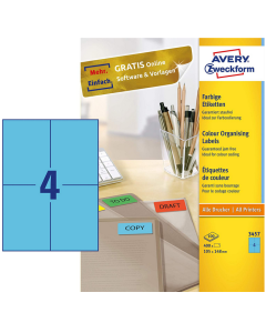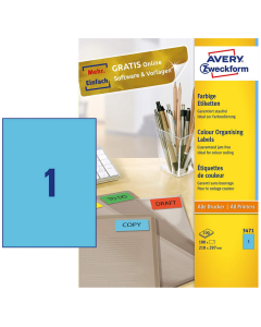 Étiquettes autocollantes - Bleu - 210 x 297 mm AVERY Lot de 100Référence : 7203471