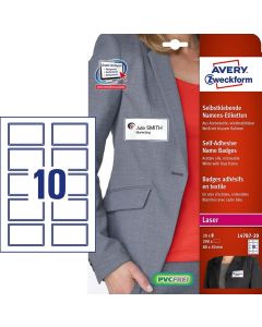 Etiquettes Badges pour Textile - Blanc - 85 x 50 mm AVERY Lot de 200Référence : 72004883