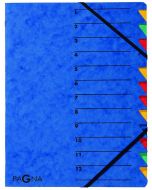 Trieur en carton bleu avec 12 compartiments numérotés de 1-12 pour classer les documents au bureau ou à la maison. Référence 300002780