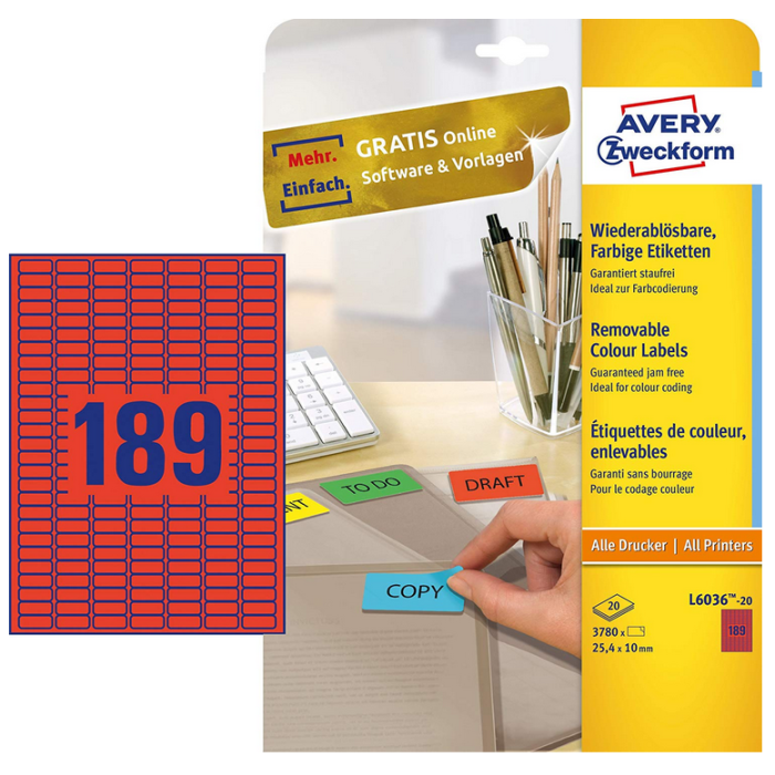 Mini-étiquettes AVERY pour copieurs, imprimantes jet d'encre et laser. Référence L6036-20