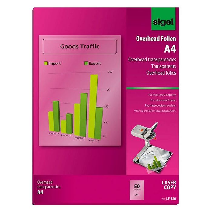 SIGEL Lot de 50 Films transparents pour imprimantes Laser et photocopieuse en couleur. Référence LF620